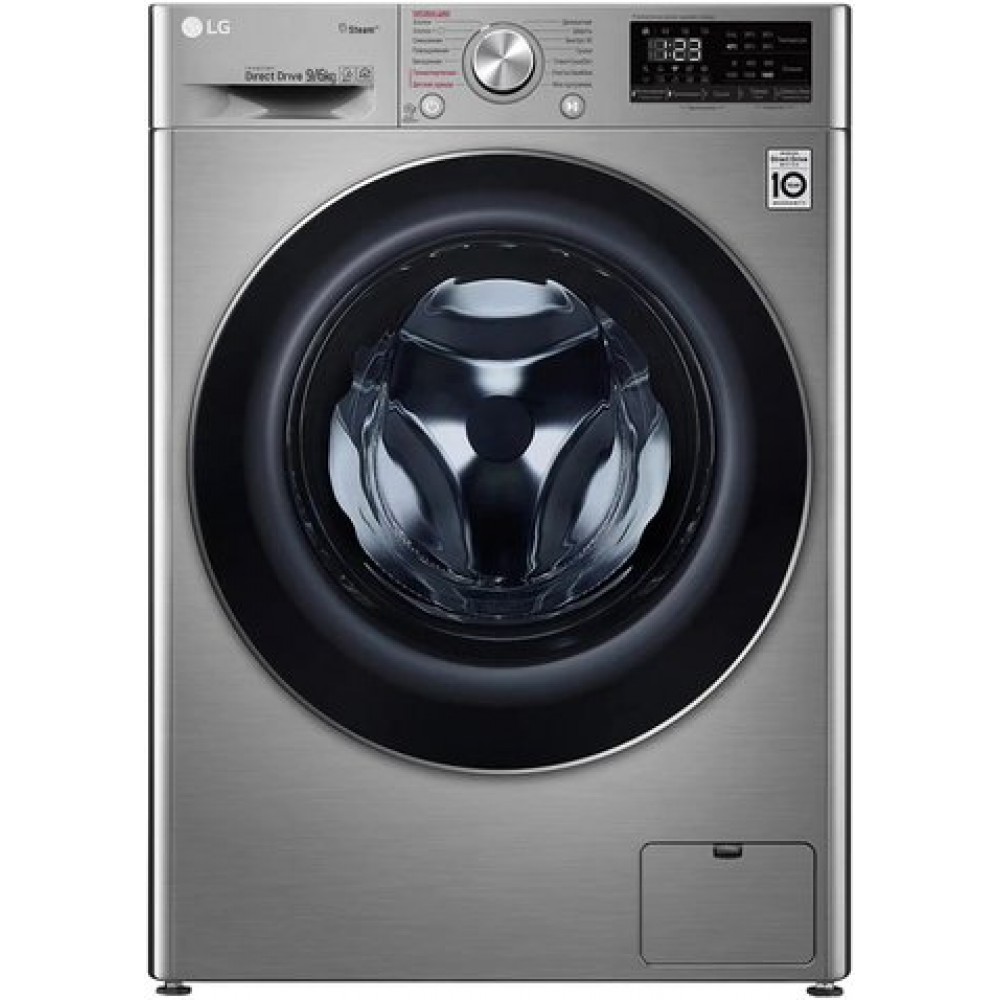 отдельностоящая, стирально-сушильная машина, с паром, загрузка до 9 кг, отжим 1400 об/мин, глубина 56.5 см (с люком 62 см), энергопотребление A, прямой привод, 14 программ, 6 Motion (LG)
