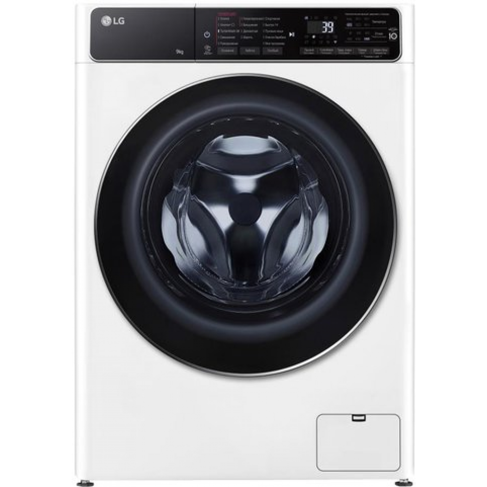 отдельностоящая, стиральная машина, с паром, загрузка до 9 кг, отжим 1200 об/мин, глубина 47.5 см, энергопотребление (new) A, прямой привод, 14 программ, AI DD (LG)